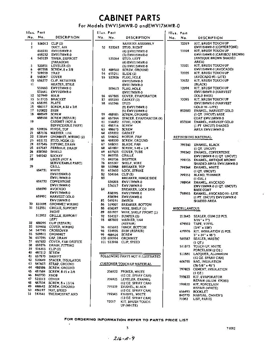 Parts for EWV17MWR0