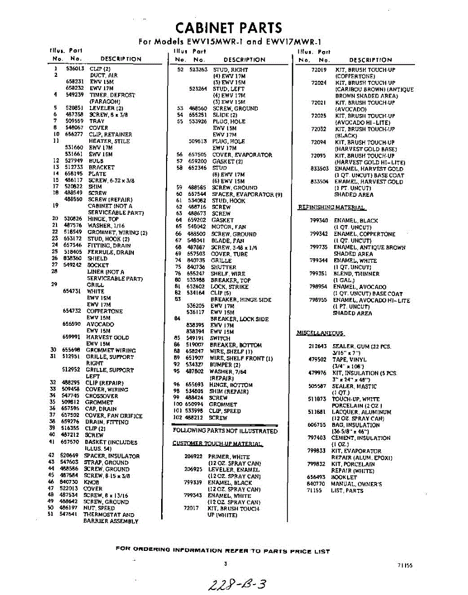 Parts for Whirlpool EWV17MWR1: 03 - Section Parts