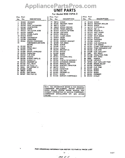 Parts for Whirlpool EXD25PM0: 11 - Section Parts