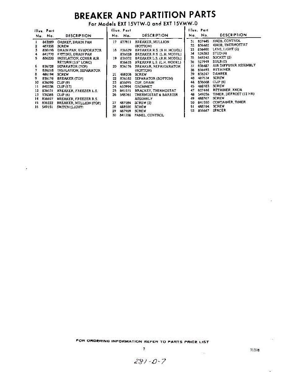 Parts for Whirlpool EXT15VMW0: 07 - Section Parts