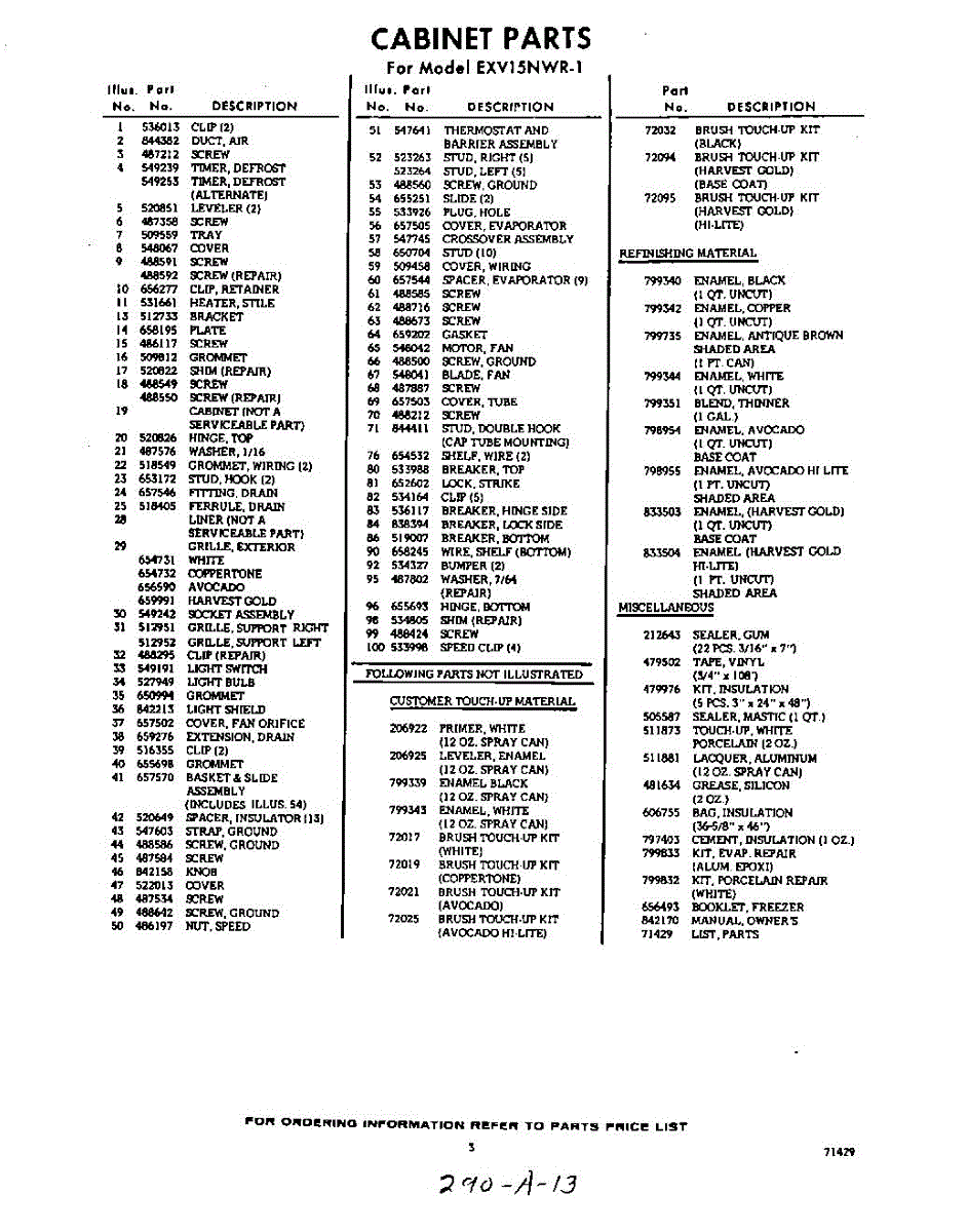 Parts for EXV15NWR1