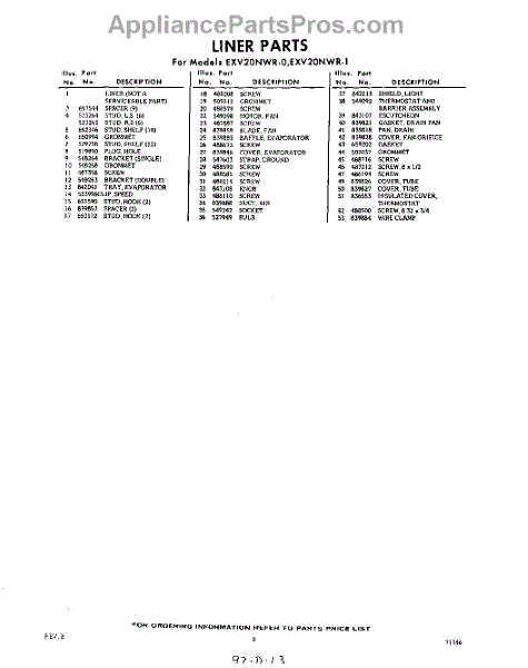 Parts for Whirlpool EXV20NWR0: 09 - Section Parts