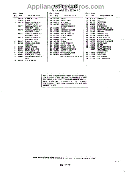 Parts for Whirlpool EXV20XWR0: 09 - Section Parts