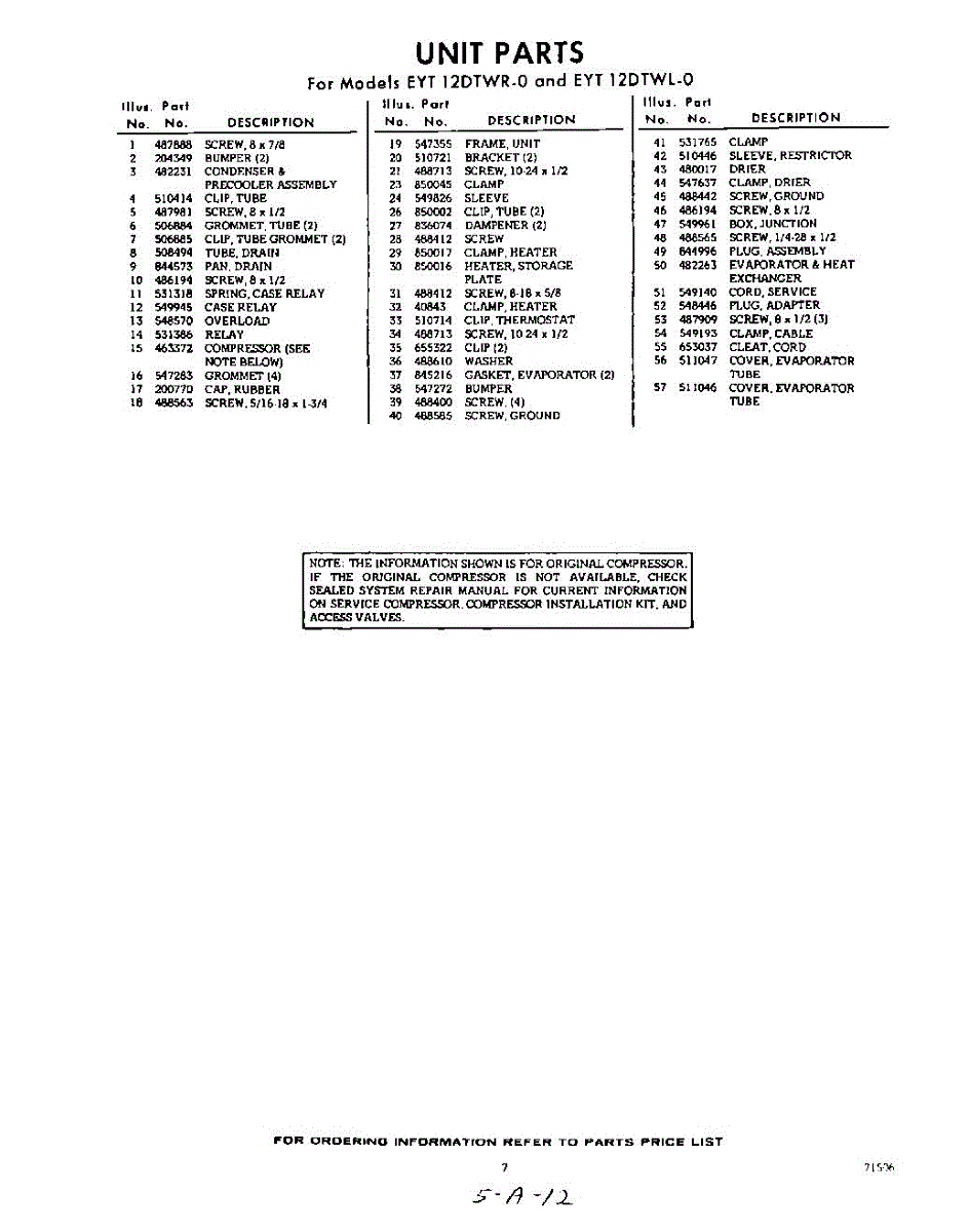 Parts for EYT12DTWR0