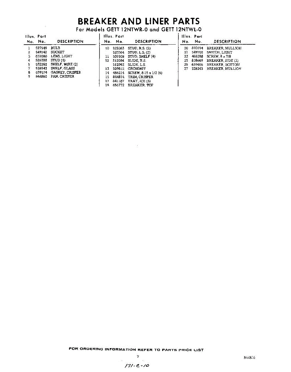 Parts for GETT12NTWR0
