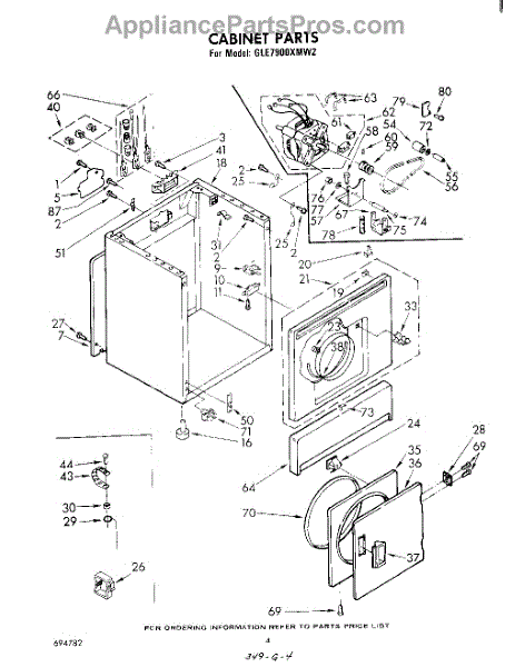 Fits all Whirlpool-made dryers (Whirlpool, Kenmore with prefix 110, Roper, KitchenAid, and Estate). Matching belt 341241 and rear support rollers 349241T. Whirlpool dryer repair manual 677818L.