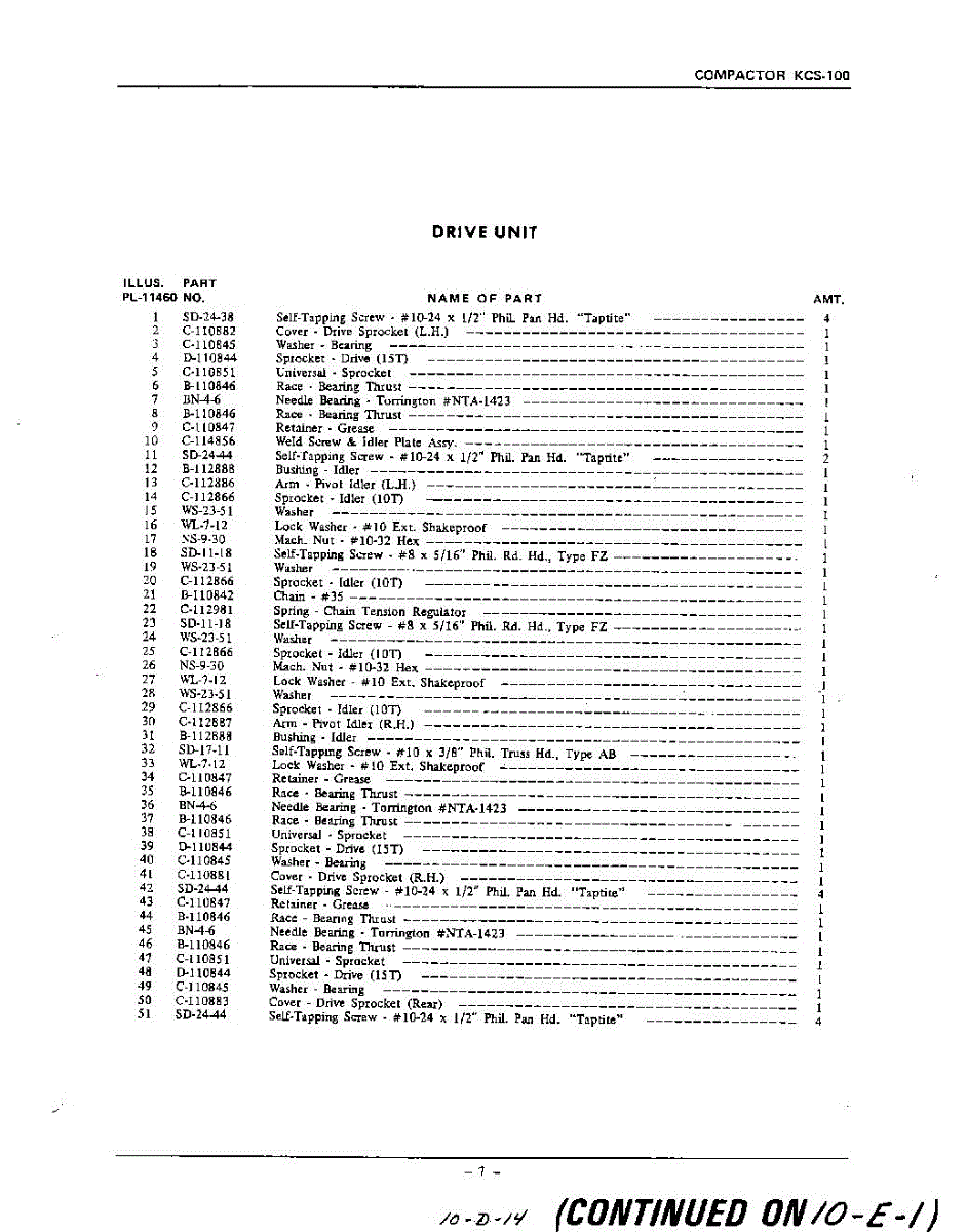 Parts for KCS100