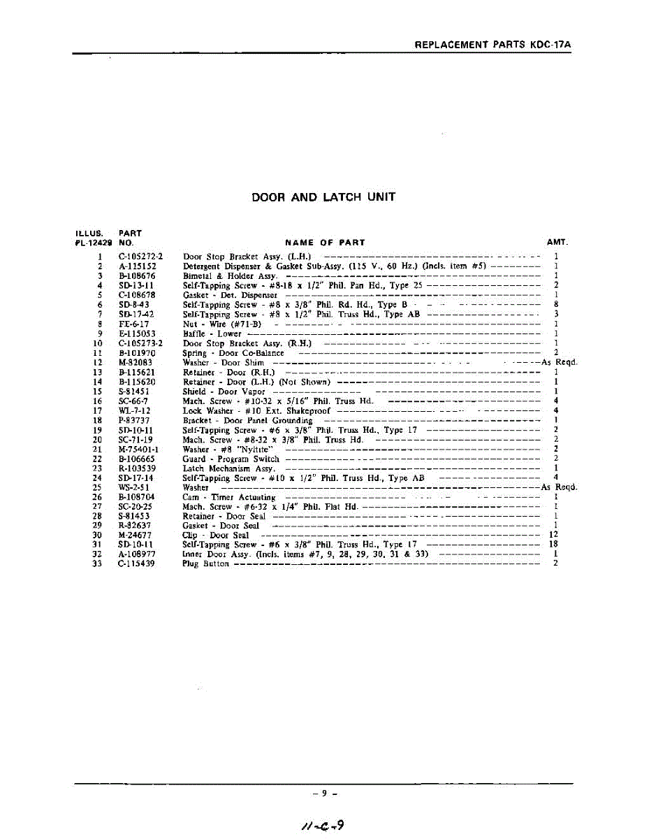 Parts for Kitchenaid KDC17A: 09 - Section Parts