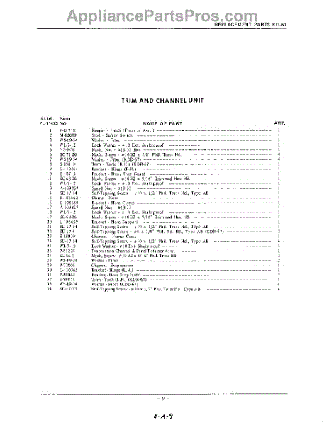 Parts for Kitchenaid KDD67: 09 - Section Parts
