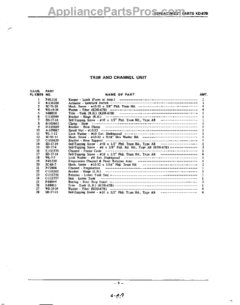 Parts for Kitchenaid KDD67B: 09 - Section Parts