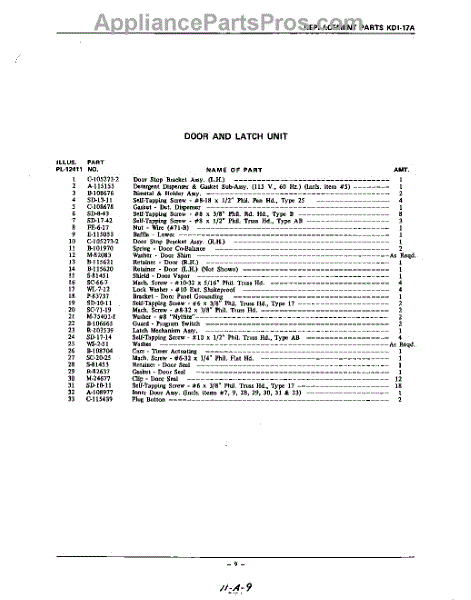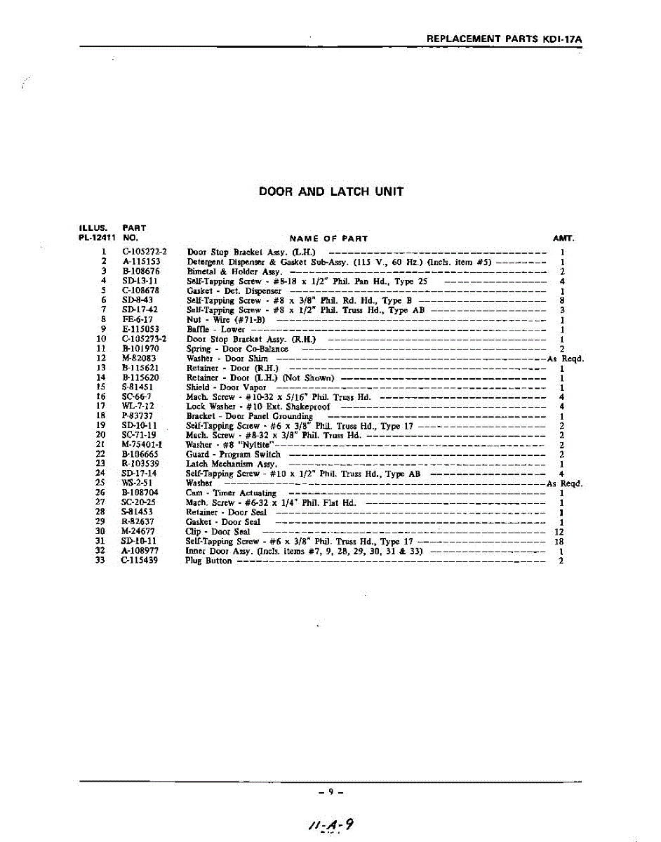 Parts for Kitchenaid KDI17A: 09 - Section Parts