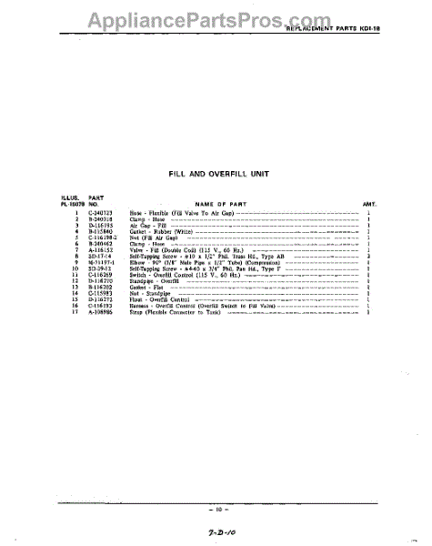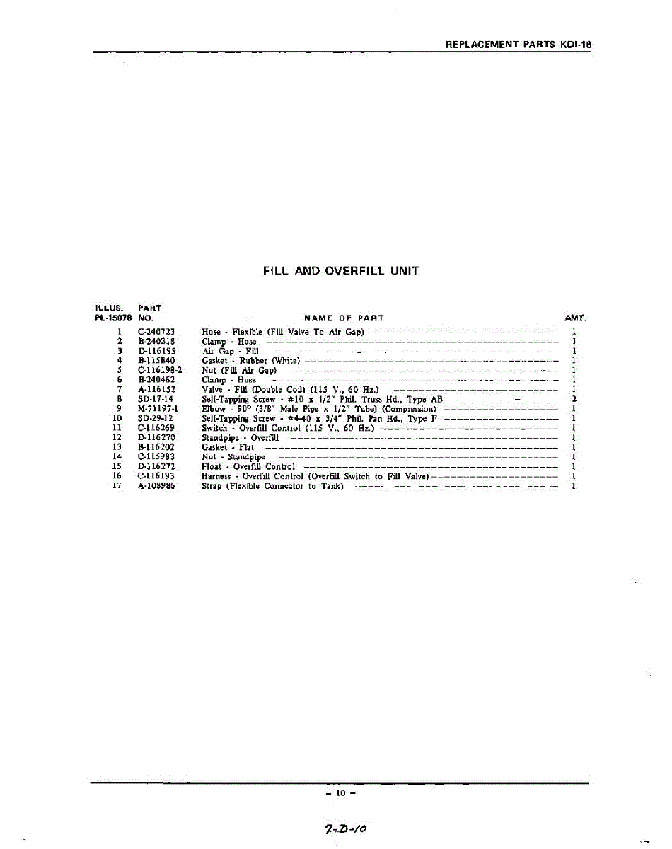 Parts for Kitchenaid KDI18: 10 - Section Parts