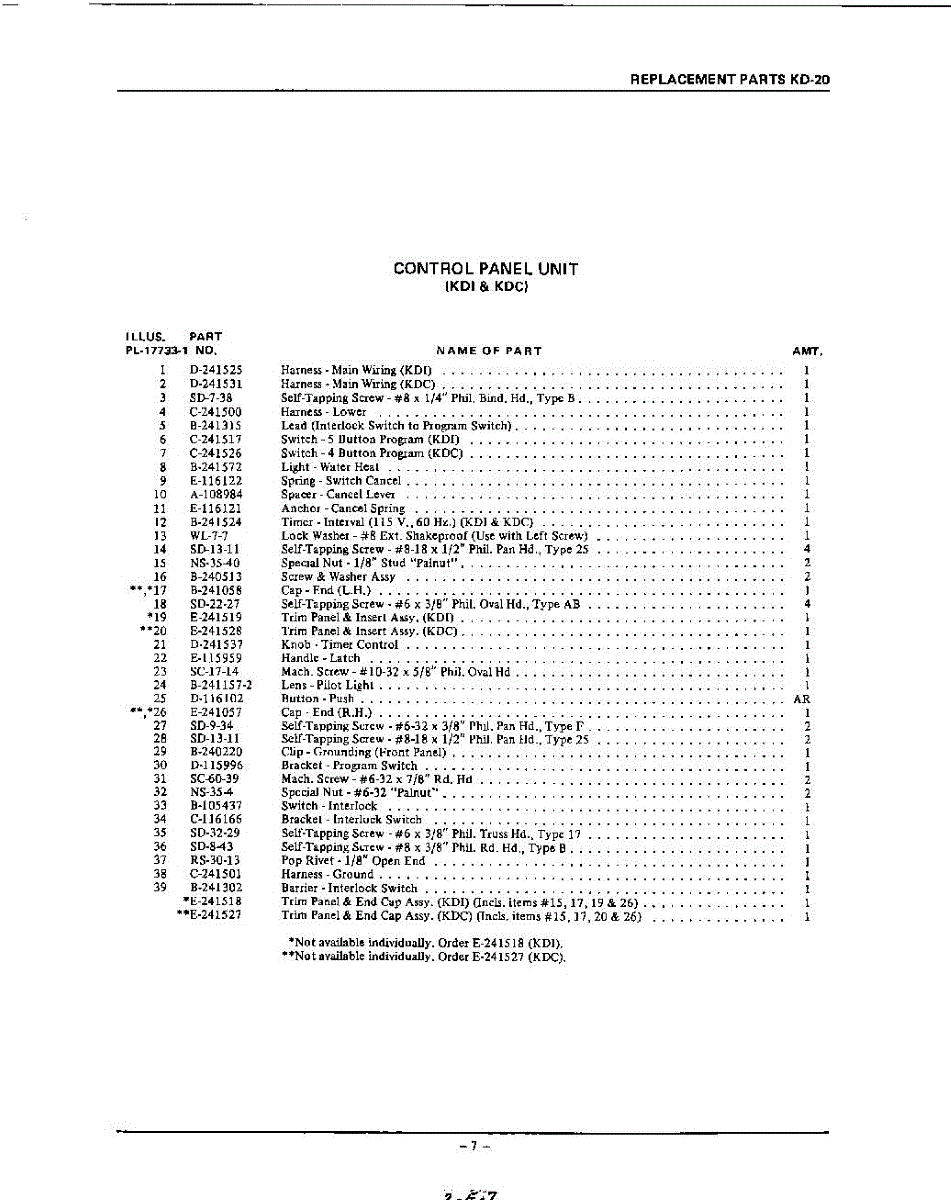 Parts for Kitchenaid KDP20: 07 - Section Parts