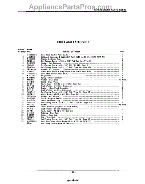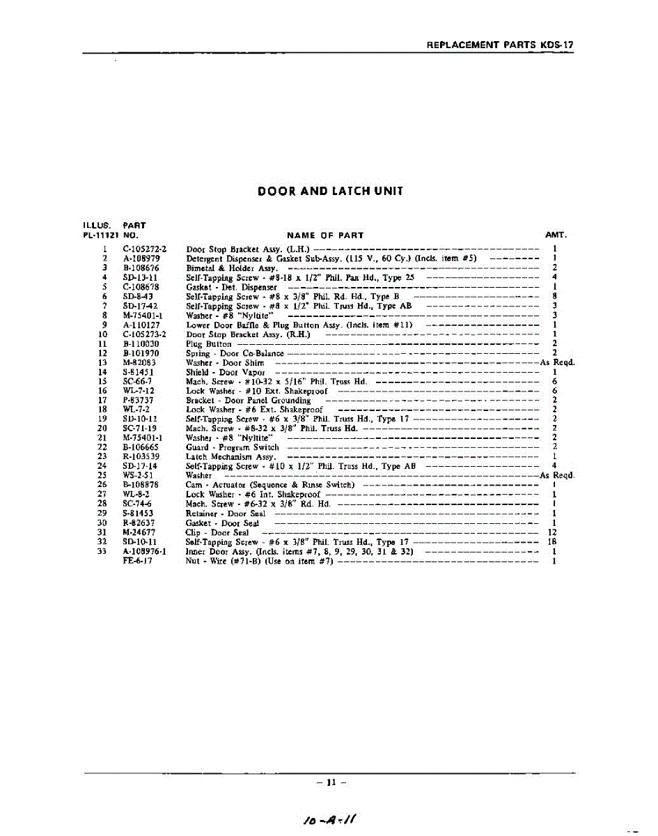 Parts for Kitchenaid KDS17: 11 - Section Parts