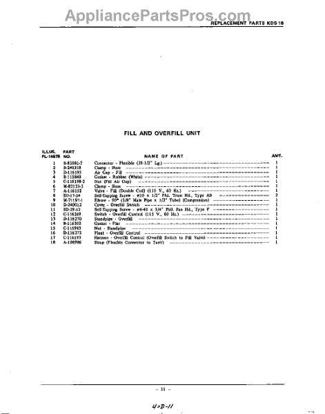 Parts for Kitchenaid KDS18: 11 - Section Parts