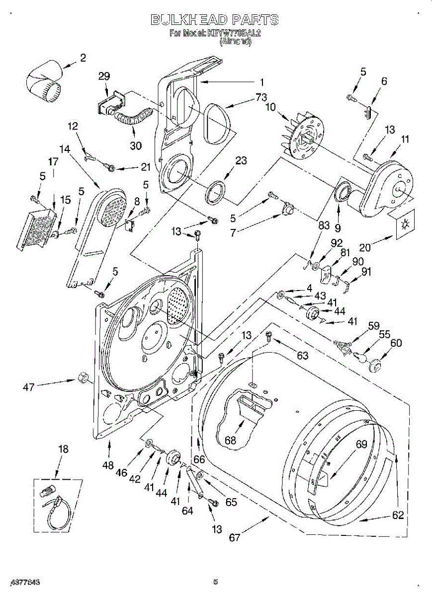 Replaces a cracked, dented, or damaged dryer drum bulkhead. This front drum component restores smooth tumbling action when the original is worn or broken.