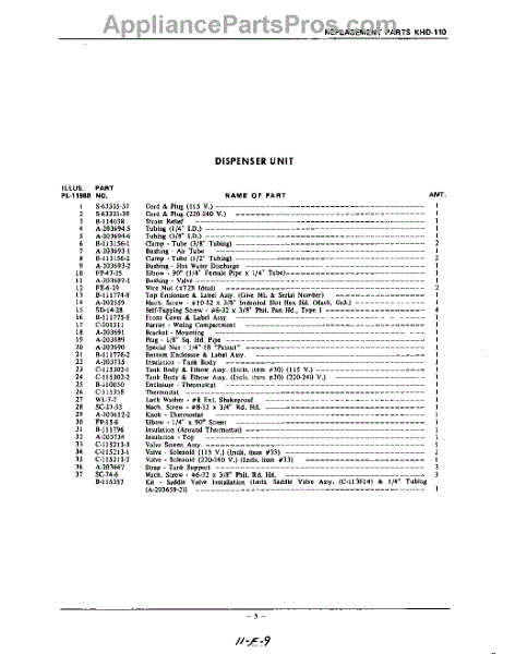 Parts for Kitchenaid KHD110: 03 - Section Parts