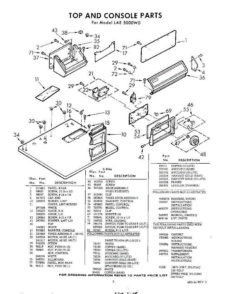 Parts for Whirlpool LAE5000W0: 03 - Section Parts