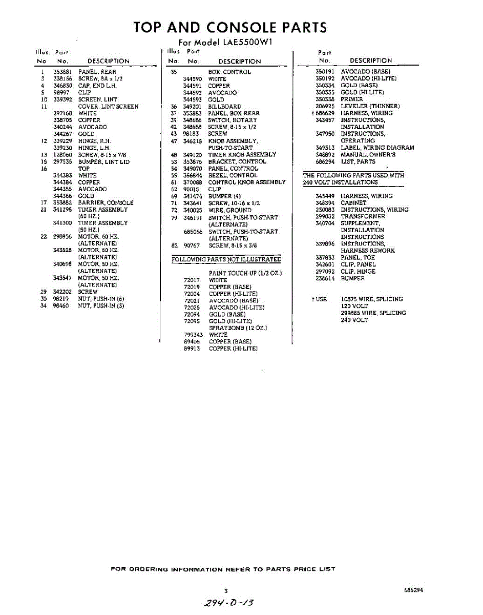 Parts for Whirlpool LAE5500W1: 03 - Section Parts