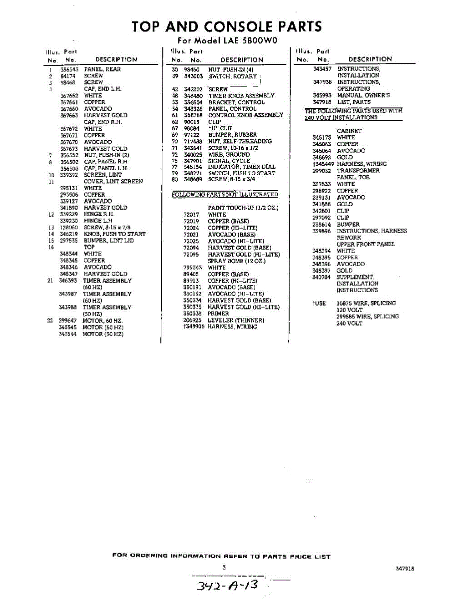 Parts for Whirlpool LAE5800W0: 03 - Section Parts