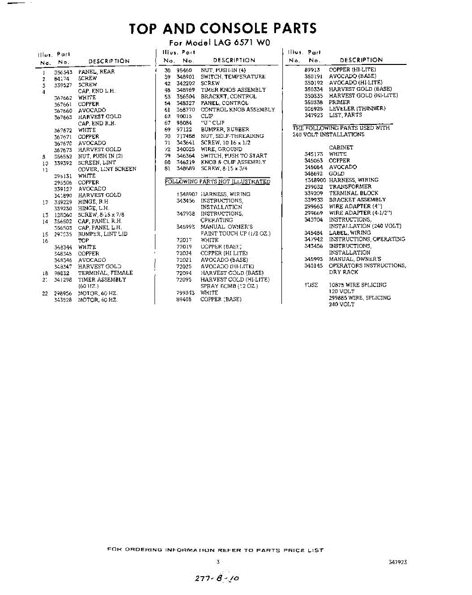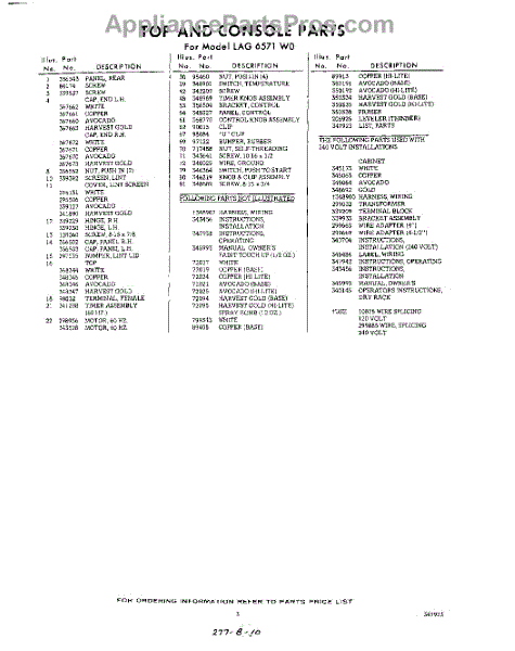 Parts for Whirlpool LAG6571W0: 03 - Section Parts