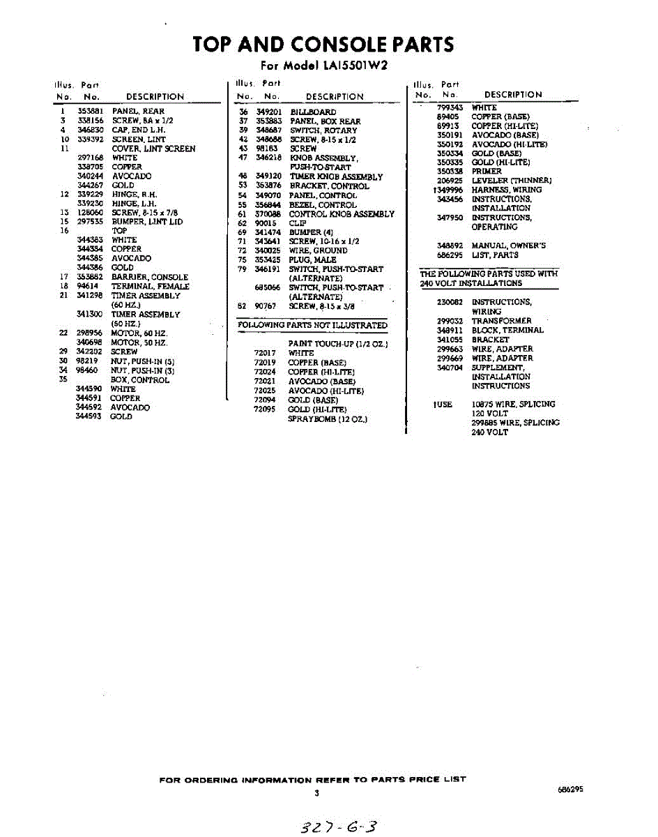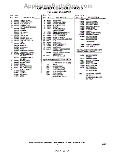 Parts for Whirlpool LAI5501W2: 03 - Section Parts