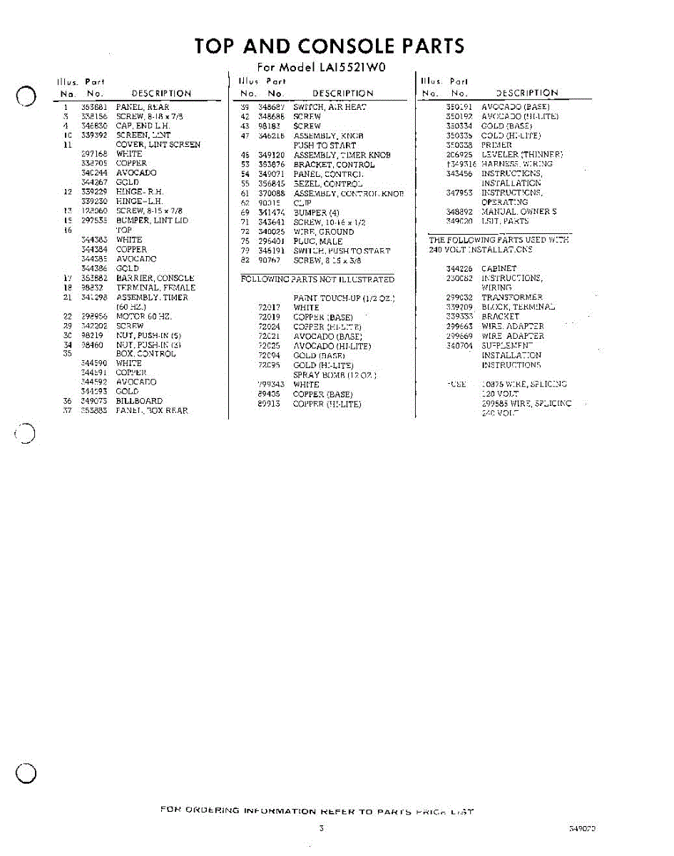 Parts for Whirlpool LAI5521W0: 03 - Section Parts