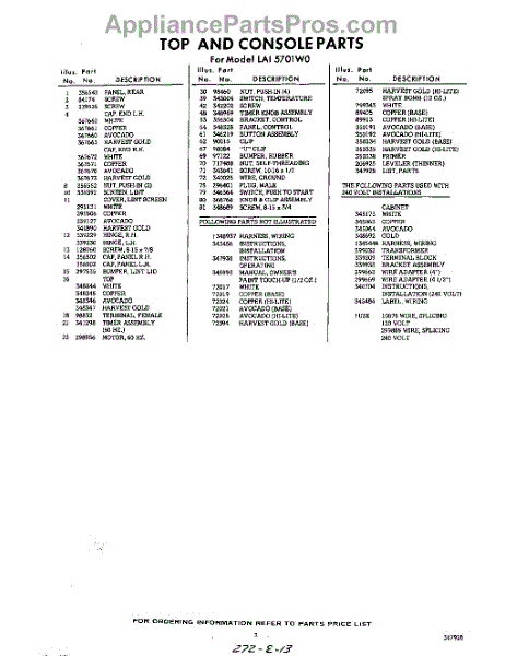 Parts for Whirlpool LAI5701W0: 03 - Section Parts