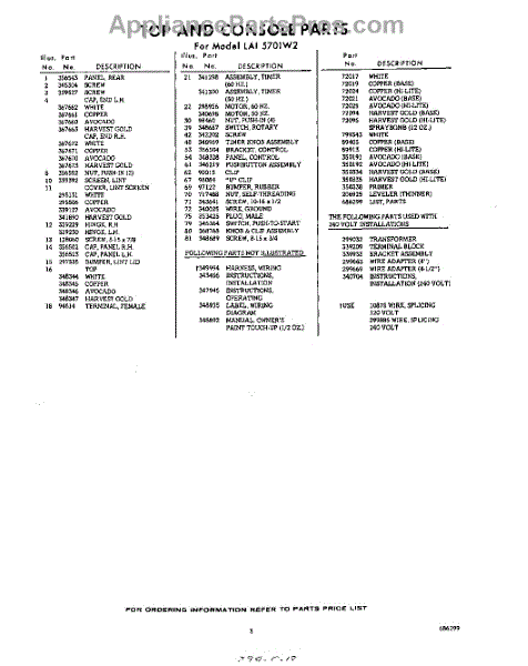 Parts for Whirlpool LAI5701W2: 03 - Section Parts