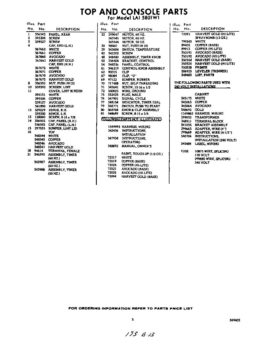 Parts for Whirlpool LAI5801W1: 03 - Section Parts
