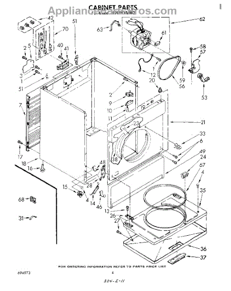 Fits all Whirlpool-made dryers (Whirlpool, Kenmore with prefix 110, Roper, KitchenAid, and Estate). Matching belt 341241 and rear support rollers 349241T. Whirlpool dryer repair manual 677818L.