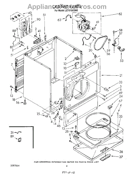 Fits all Whirlpool-made dryers (Whirlpool, Kenmore with prefix 110, Roper, KitchenAid, and Estate). Matching belt 341241 and rear support rollers 349241T. Whirlpool dryer repair manual 677818L.