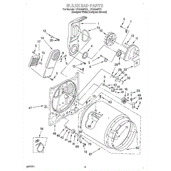This blower housing assembly directs airflow from the dryer's drum to the exhaust, helping the appliance vent properly for efficient drying. It replaces a damaged or cracked housing to restore correct air path and reduce airflow loss. What it does: