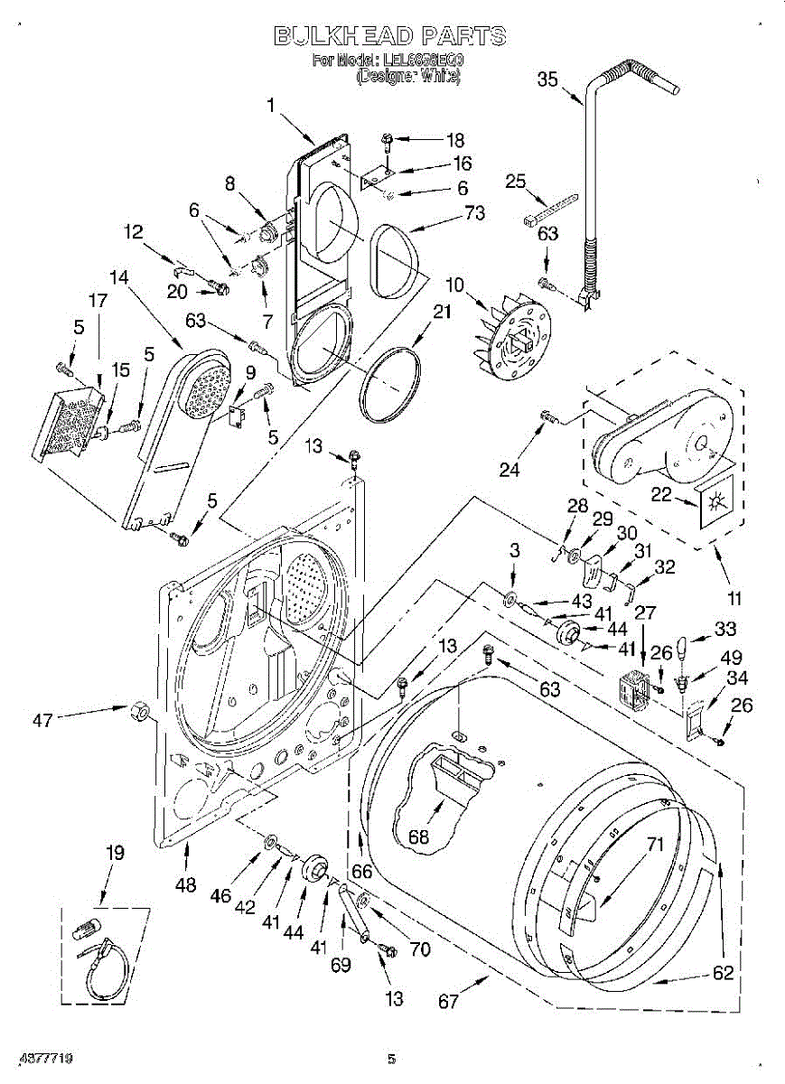 Seals the rear drum edge to contain hot air and improve drying efficiency. Replace if worn, torn, or causing noise. Confirm fit with your model number.