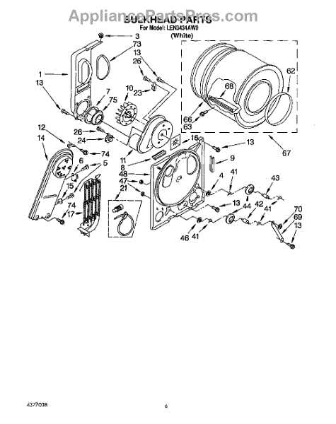 Replacement drum baffle that lifts and tumbles clothes inside the dryer for more even drying and helps prevent garments from snagging. Restores proper drum agitation to reduce noise and improve drying performance. What it does: