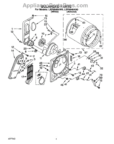 Replaces a cracked, dented, or damaged dryer drum bulkhead. This front drum component restores smooth tumbling action when the original is worn or broken.