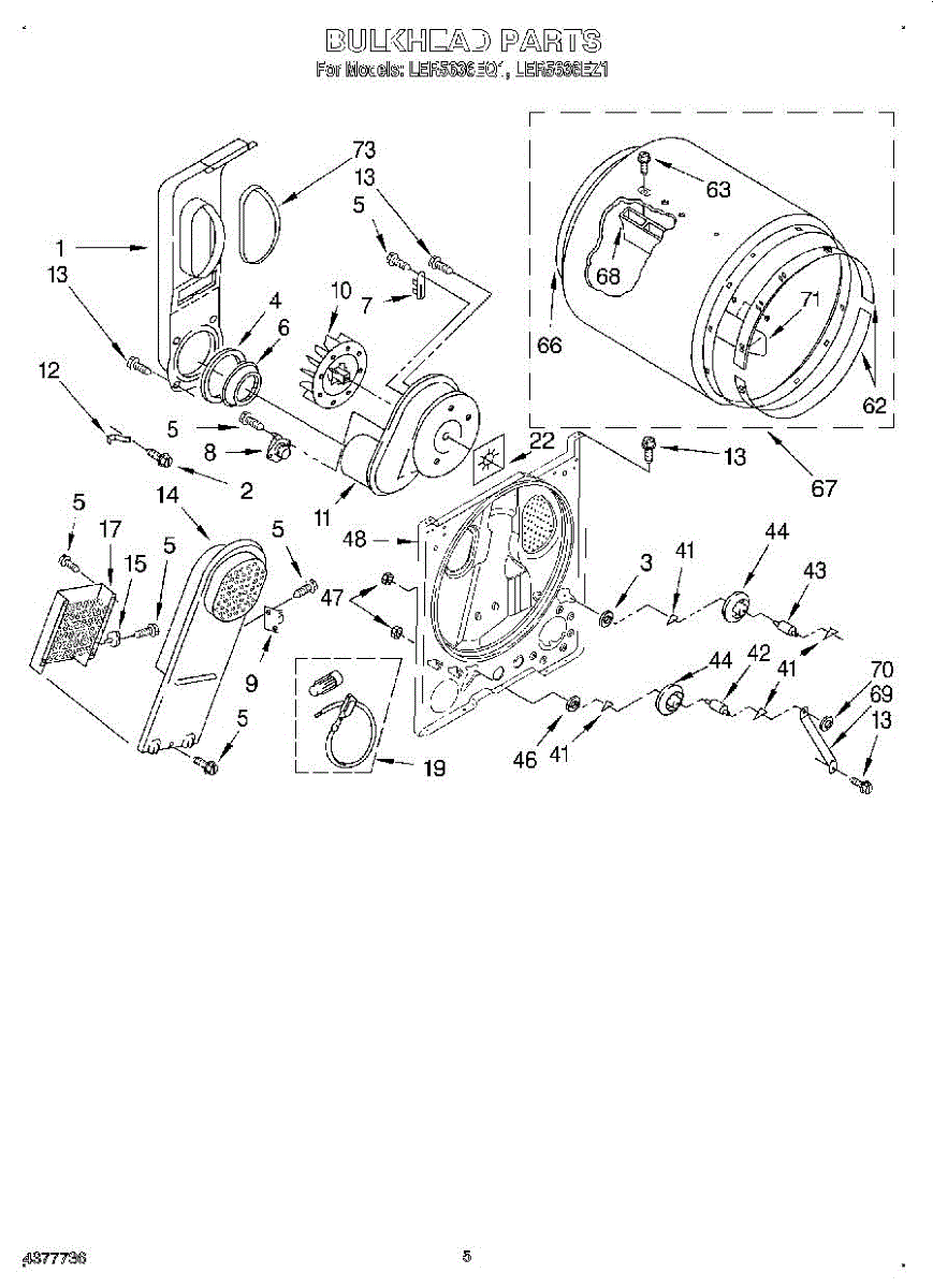 This bulkhead is the front tub housing that supports the washer drum and seals the washer cabinet to help contain water. Replaces a cracked or corroded housing to restore proper drum alignment and help prevent leaks. What it does: