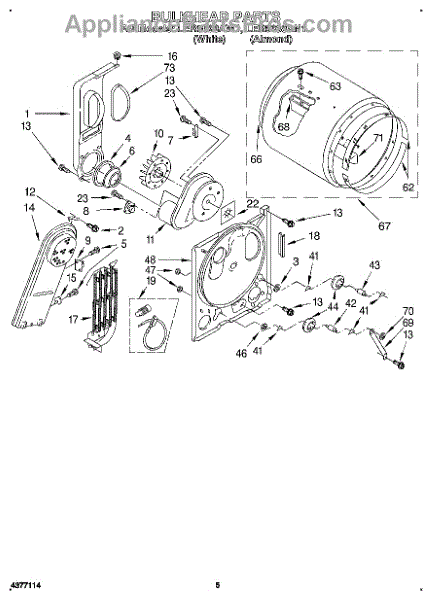 Replaces a cracked, dented, or damaged dryer drum bulkhead. This front drum component restores smooth tumbling action when the original is worn or broken.