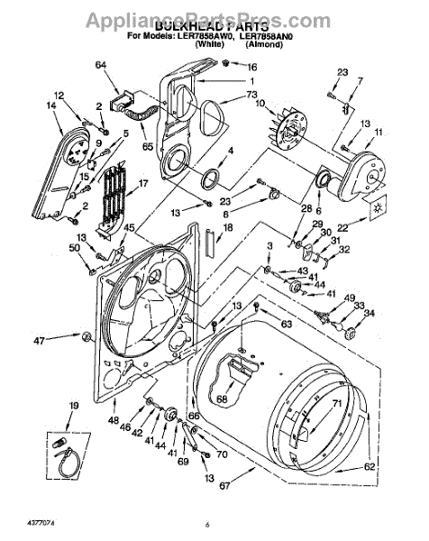 Replaces a cracked, dented, or damaged dryer drum bulkhead. This front drum component restores smooth tumbling action when the original is worn or broken.