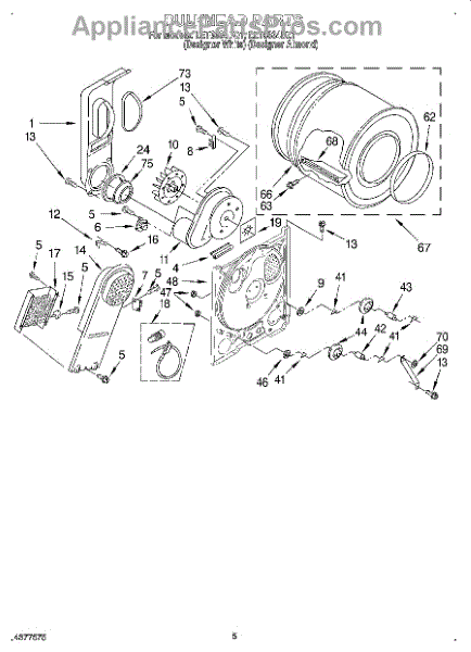This is a drum assembly intended for use with dryers. This part can be found inside the dryer and is responsible for holding clothing while a cycle is running. It holds wet laundry while loading the appliance. Over time and with use, the drum assembly can start to wear out. This can cause the dryer to squeal, start and stop during a cycle, make buzzing noises, or seize up.If the drum assembly is damaged, it will need to be replaced. Make sure to have basic tools and a pair of work gloves ready. The dryer should be turned off and unplugged from the wall. Raise the top panel, remove the front panel, and then remove the drum. The drum support roller should be taken out and installed on the new drum. Reinstall with the new component and reassemble all parts before use.The drum assembly is made to be used with dryers and washer/dryer combos from Inglis, Estate, Admiral, Crosley, Roper, Magic Chef, Amana, KitchenAid, Maytag, Kenmore, and Whirlpool. It is a genuine OEM replacement part that is sourced directly from the manufacturer. The part is sold on an individual basis.