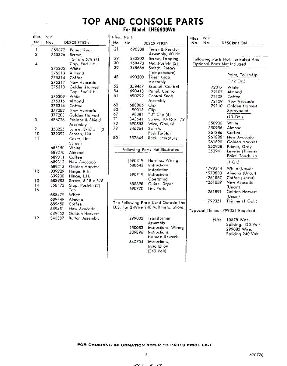 Parts for Whirlpool LHE6900W0: 03 - Section Parts