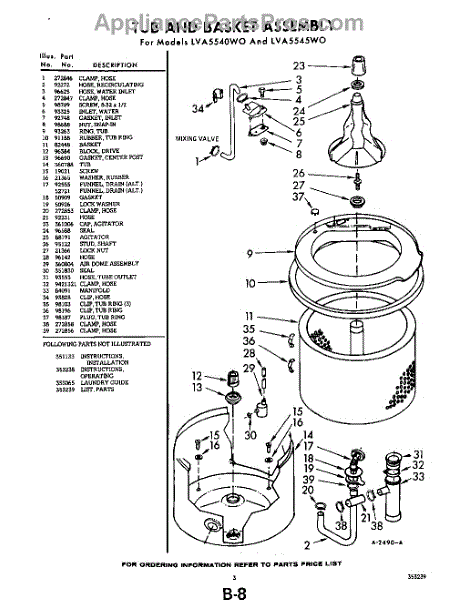 Parts for Whirlpool LVA5545W0: 03 - Section Parts