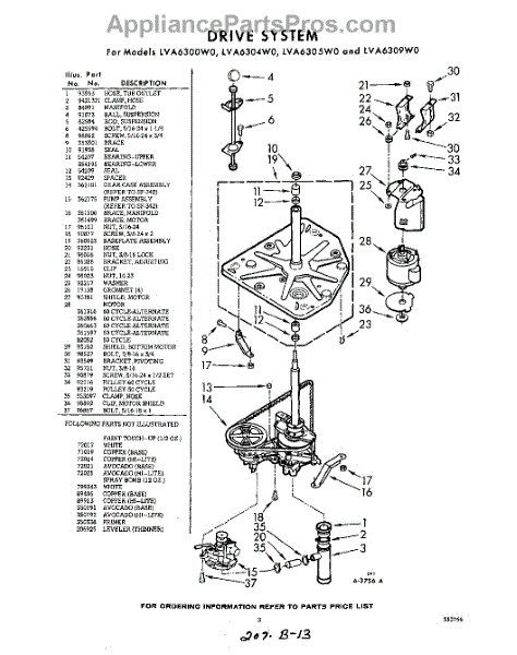 Parts for Whirlpool LVA6300W0: 03 - Section Parts