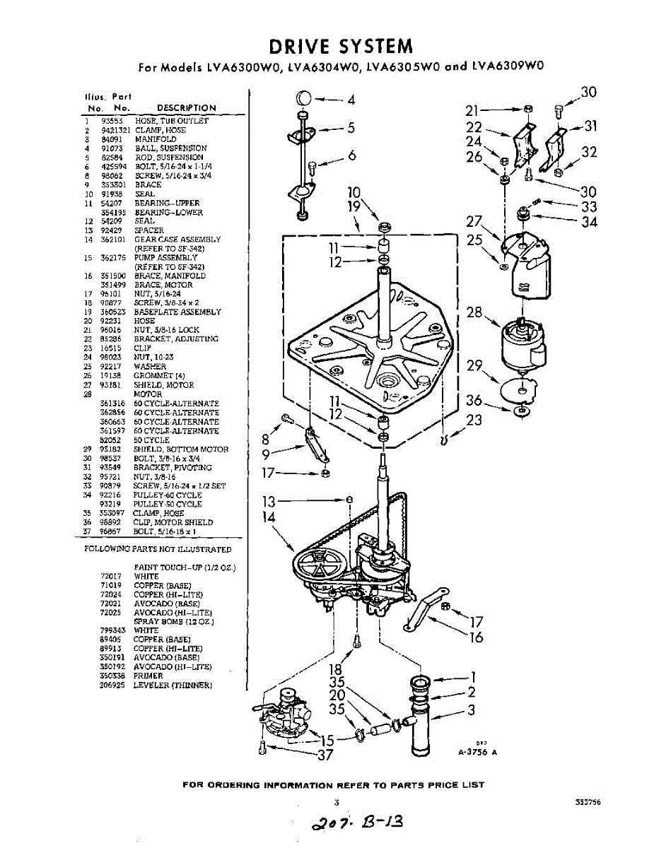 Parts for Whirlpool LVA6305W0: 03 - Section Parts