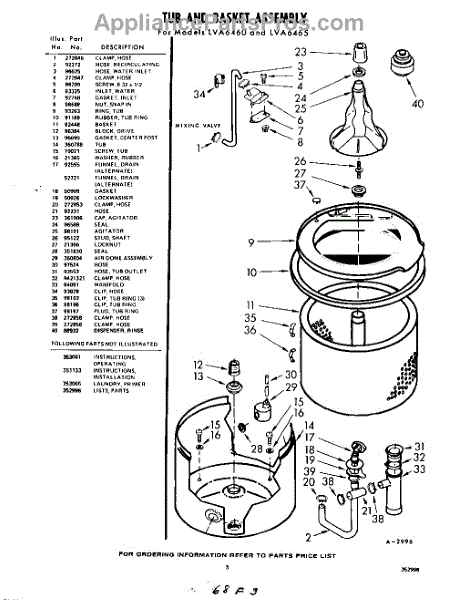 Parts for Whirlpool LVA6465W0: 03 - Section Parts