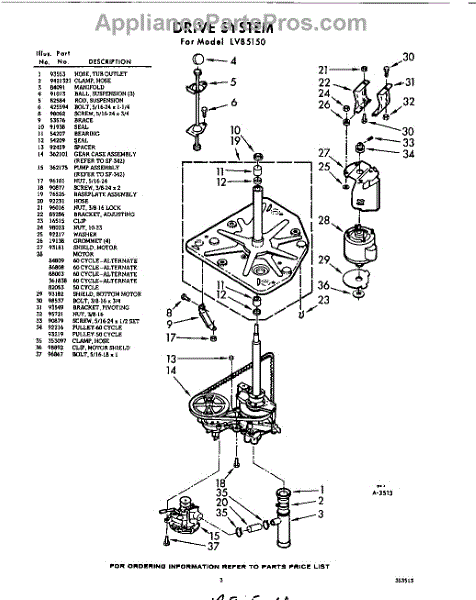 Parts for Whirlpool LVB5150W1: 03 - Section Parts
