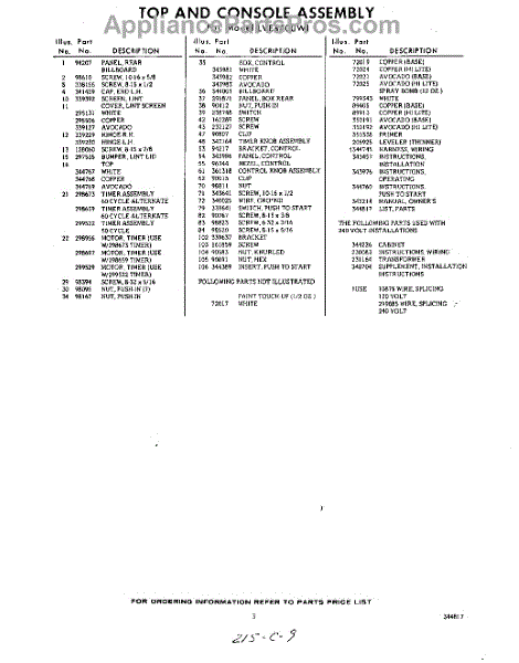 Parts for Whirlpool LVE4800W1: 03 - Section Parts