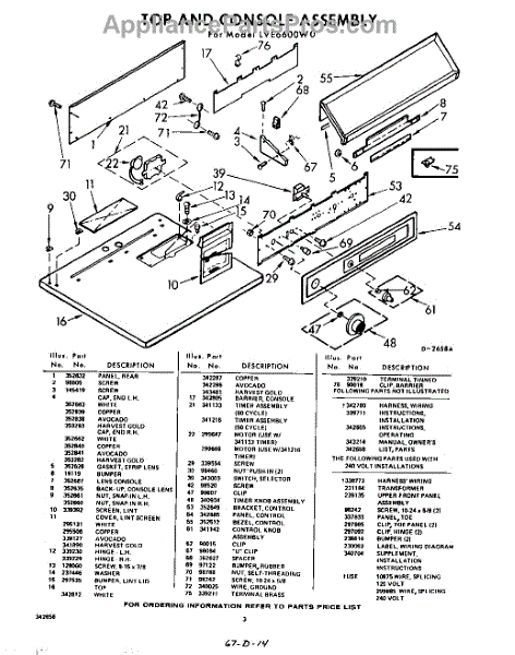 Parts for Whirlpool LVE6600W0: 03 - Section Parts