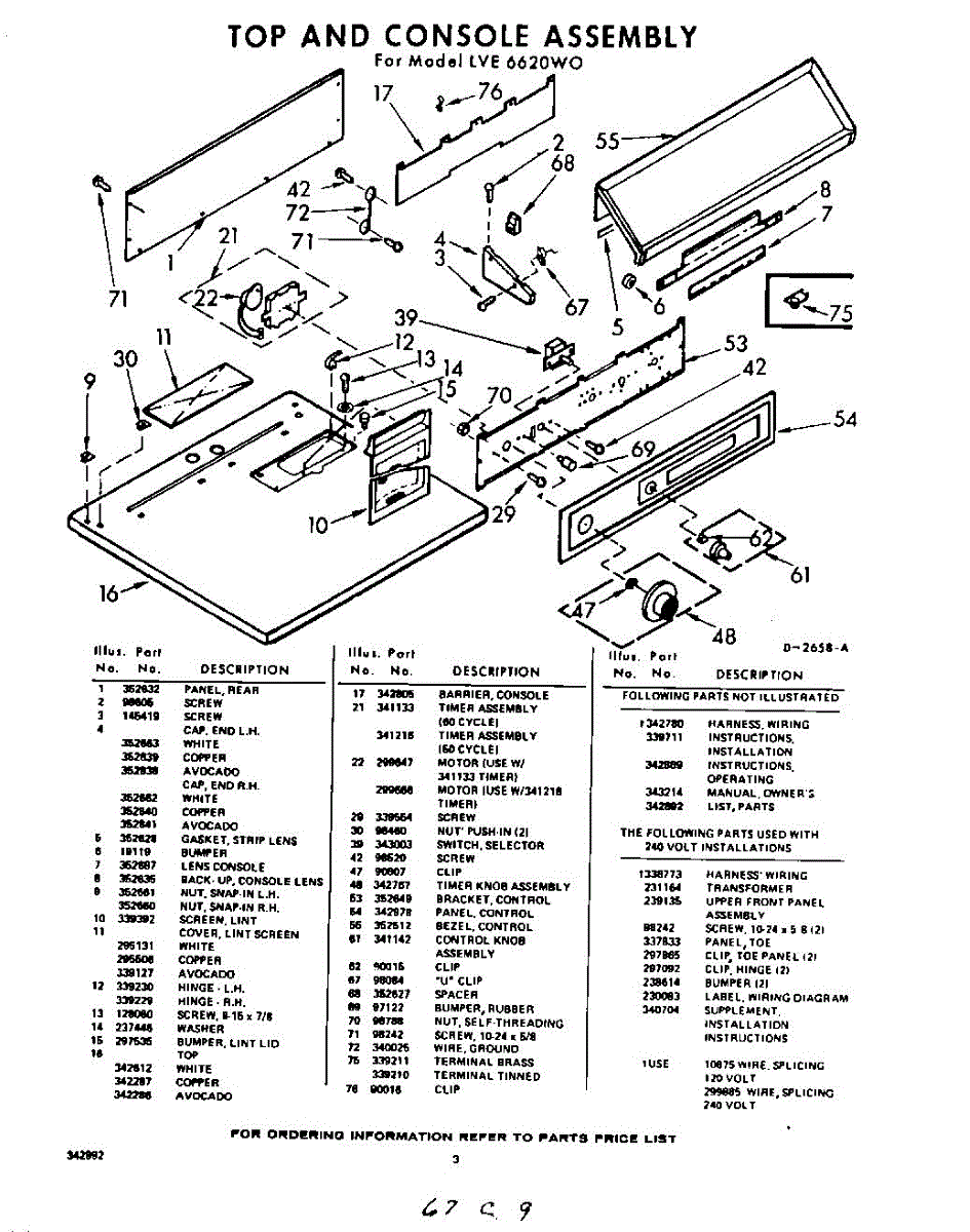 Parts for Whirlpool LVE6620W0: 03 - Section Parts