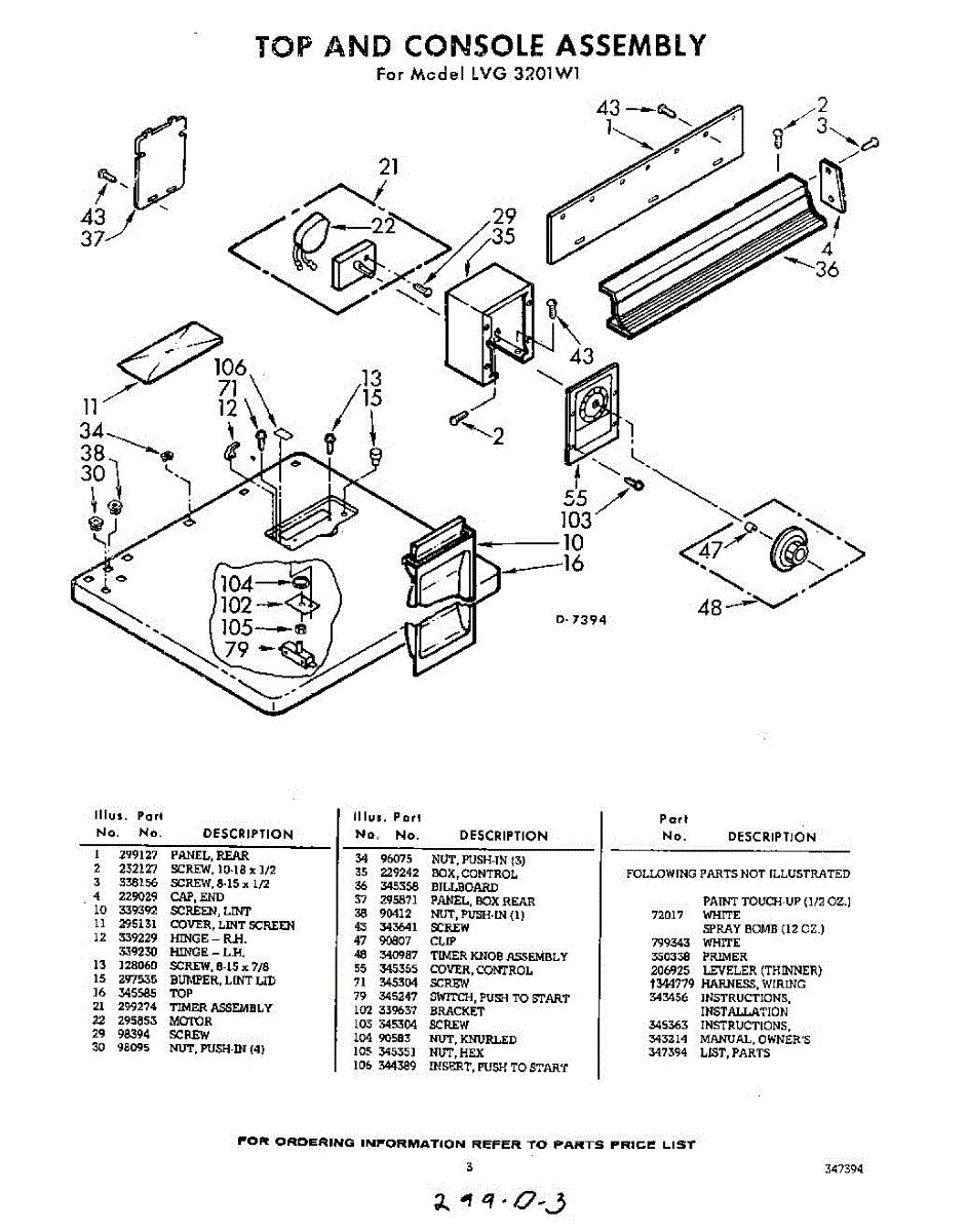 Parts for Whirlpool LVG3201W1: 03 - Section Parts